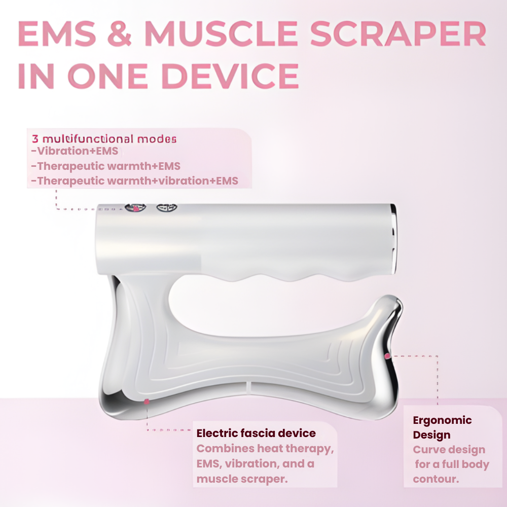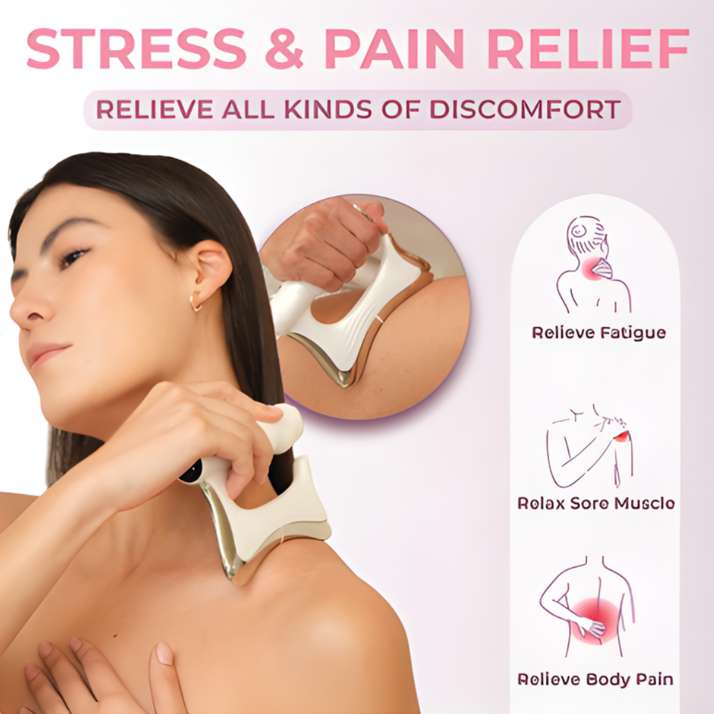The device uses targeted vibration to stimulate deep muscle tissue and fascia. As you glide it across the body, the sculpted edge helps release built-up tension and tight areas for everyday muscle comfort.